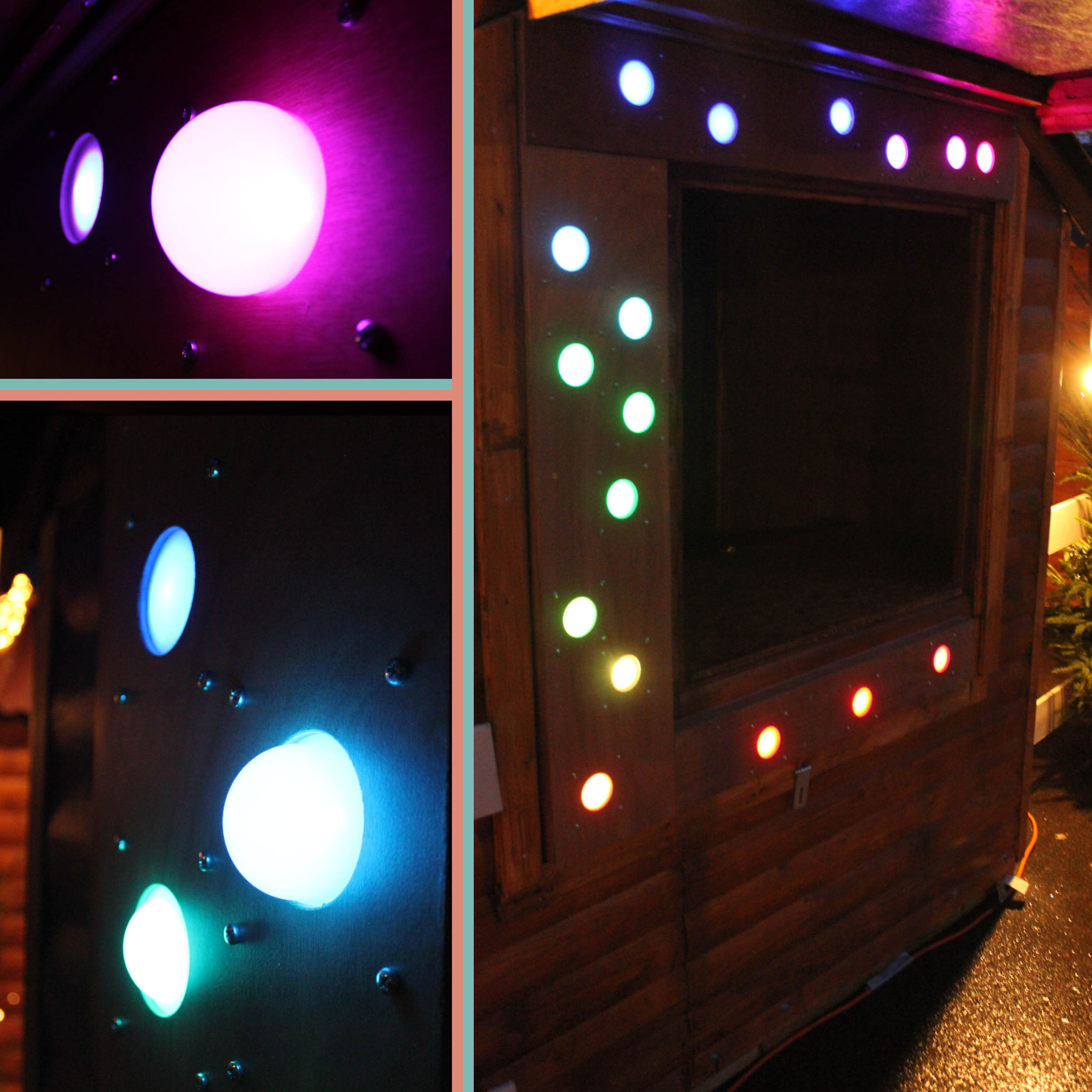 Around the time I was working on this, our community Makerspace got visited by the neighborhood committee. They were looking to spice up the local winter festival with some technology. The prototype bubble turned into an “art” installation of 17 independent bubbles that could change color via Neopixels. Scaling the prototype and making a fitting enclosure for it took a lot of effort. But with tons of help from my awesome fellow Makerspace participants we managed to finish the installation just in time.